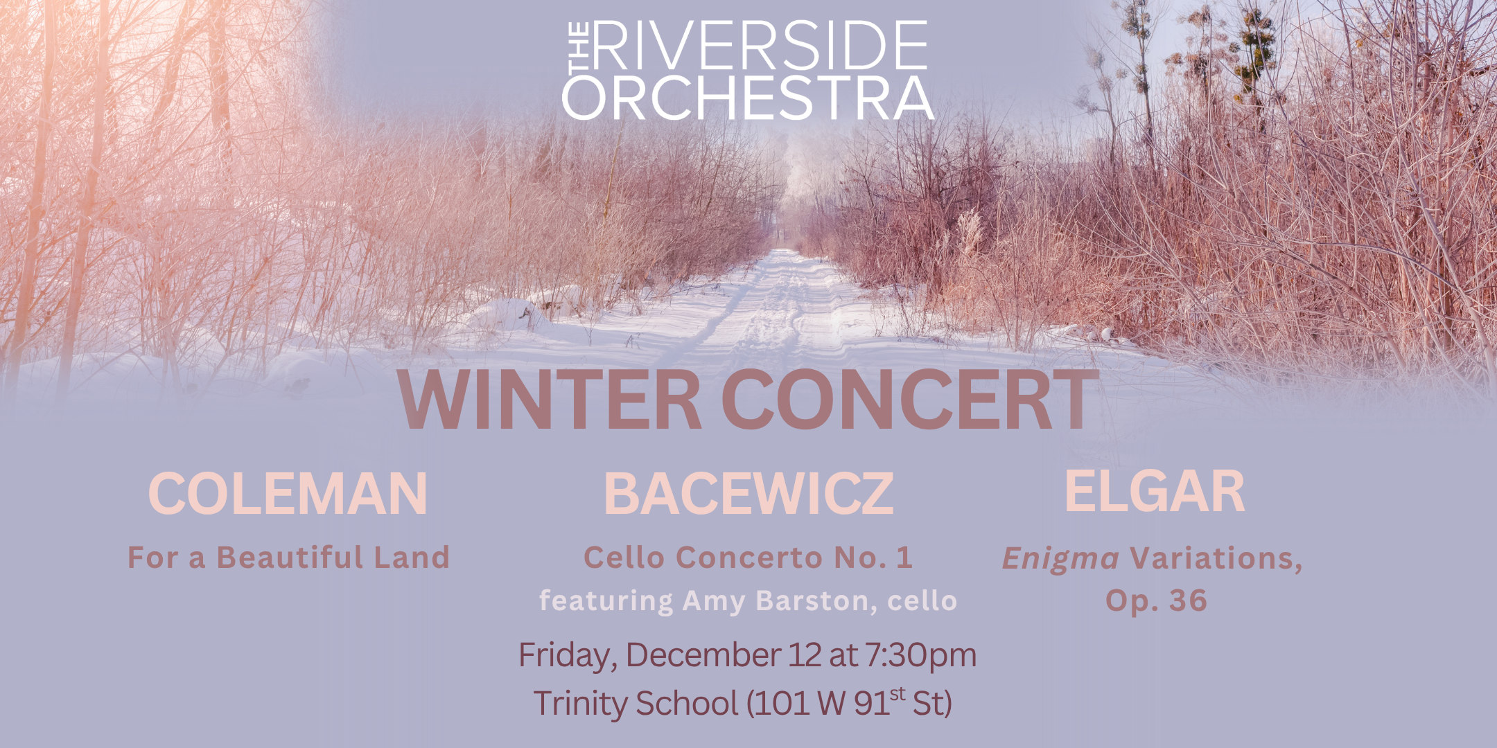 Coleman: For a Beautiful Land; Bacewicz: Concerto for Cello No. 1 with Amy Barston; Elgar: Enigma Variations, Op. 36 at Trinity School (101 W 91st Street, Manhattan)